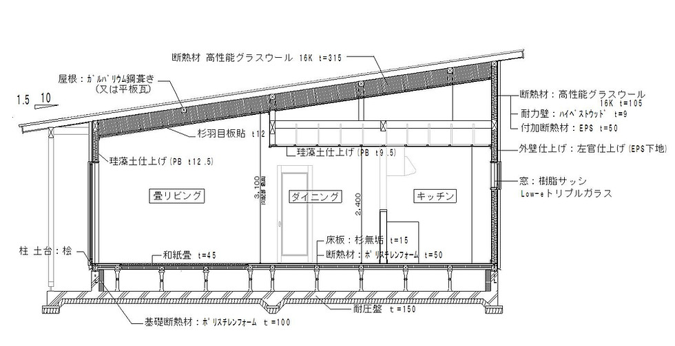 グラスウール105mmを3重に設置し、合計315mmとします。